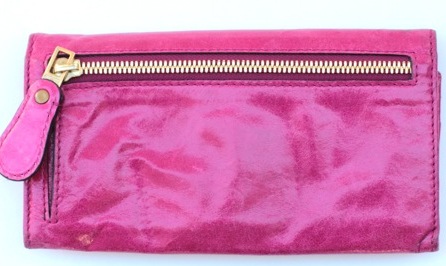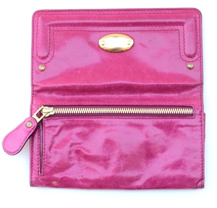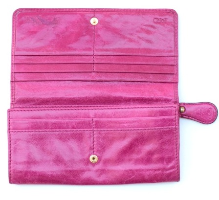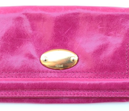 Beautiful smooth leather fuchsia pink / peony, adorned with the logo and two buttons CHLOE golden brass.